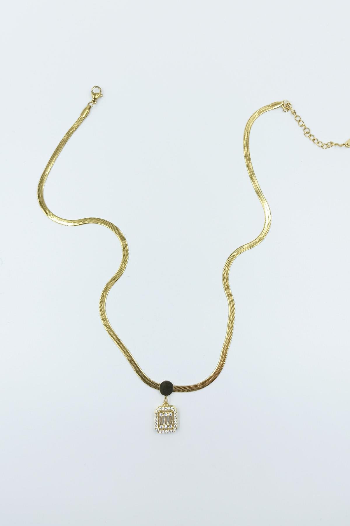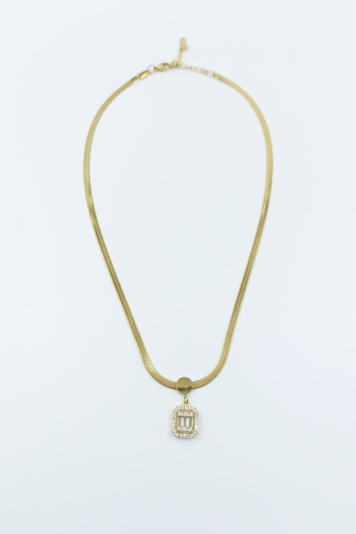 Altın Kaplama Baget Taşlı İtalyan Zincir Çelik Kolye