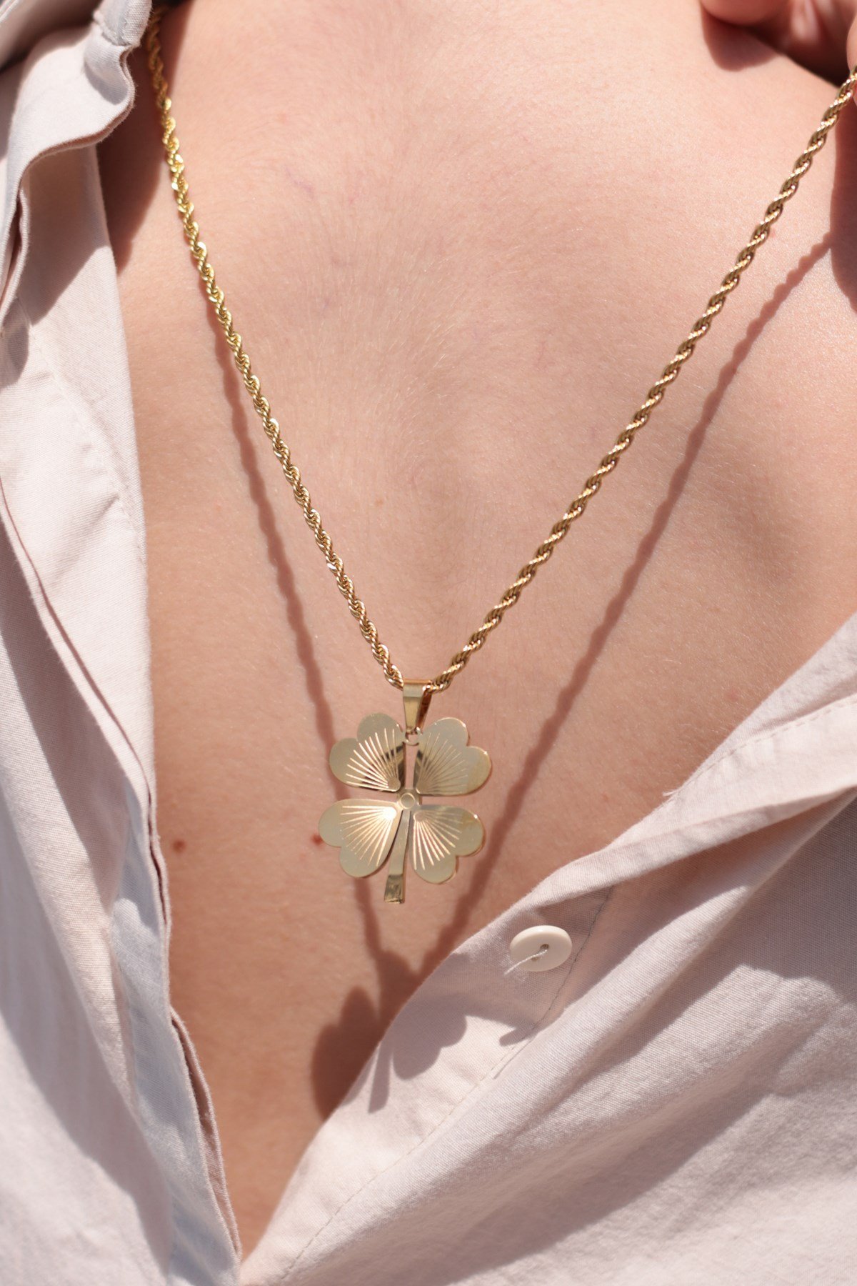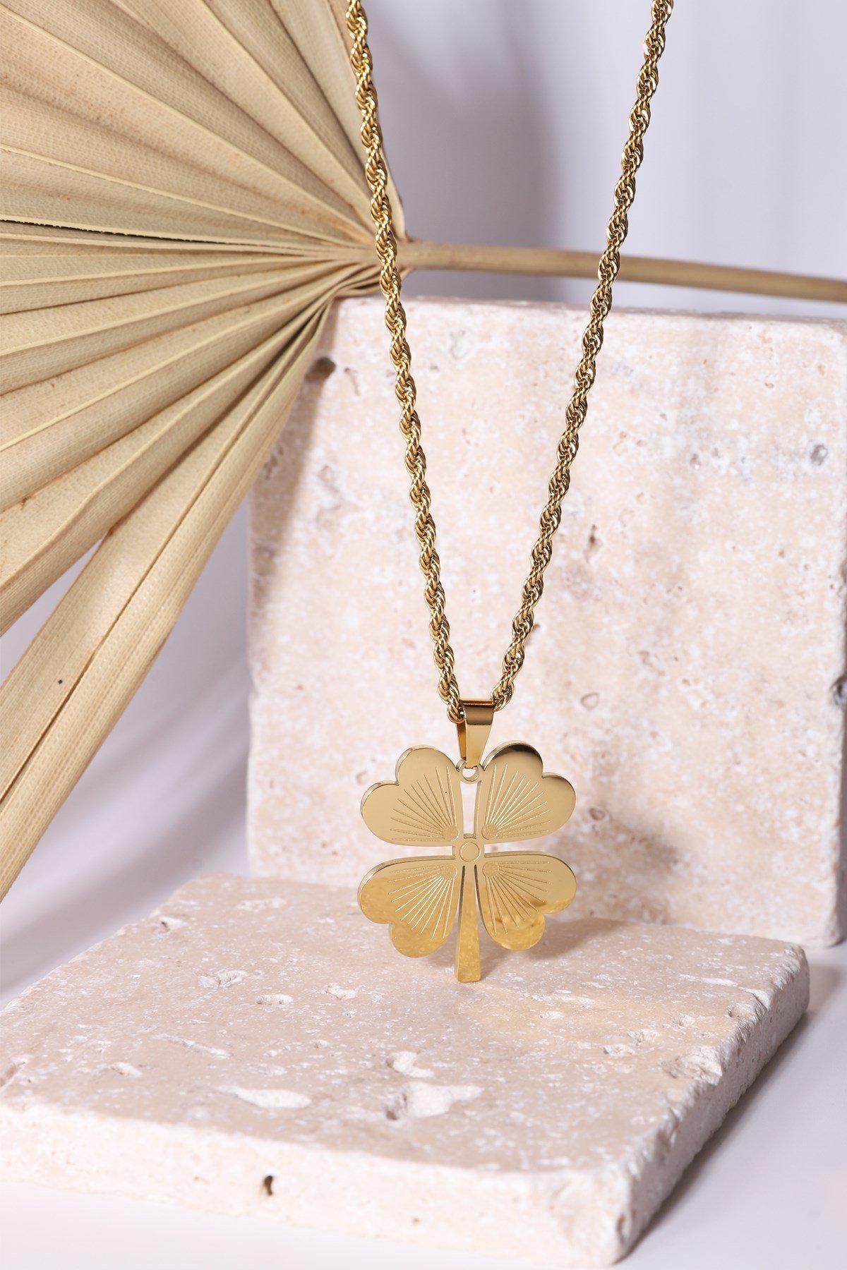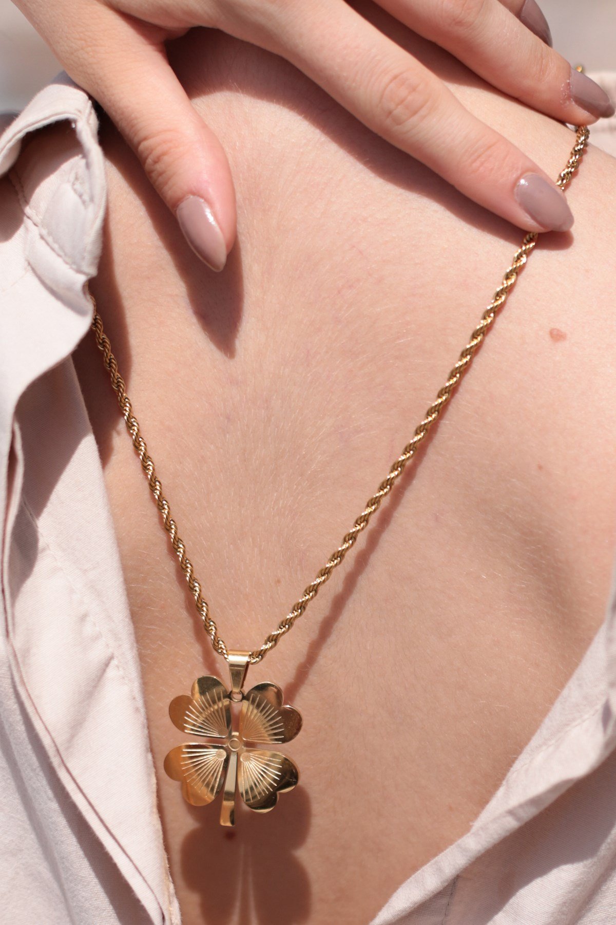 Altın Kaplama Burgu Zincir Yonca Kolye
