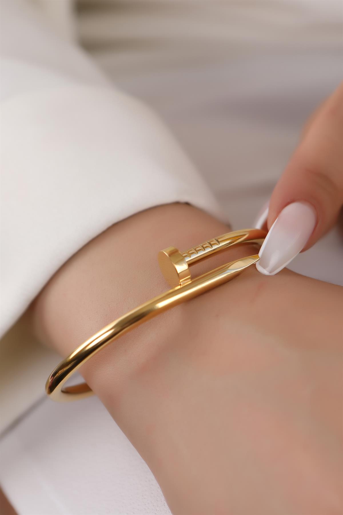 Altın Kaplama Çivi Model Kelepçe Bileklik