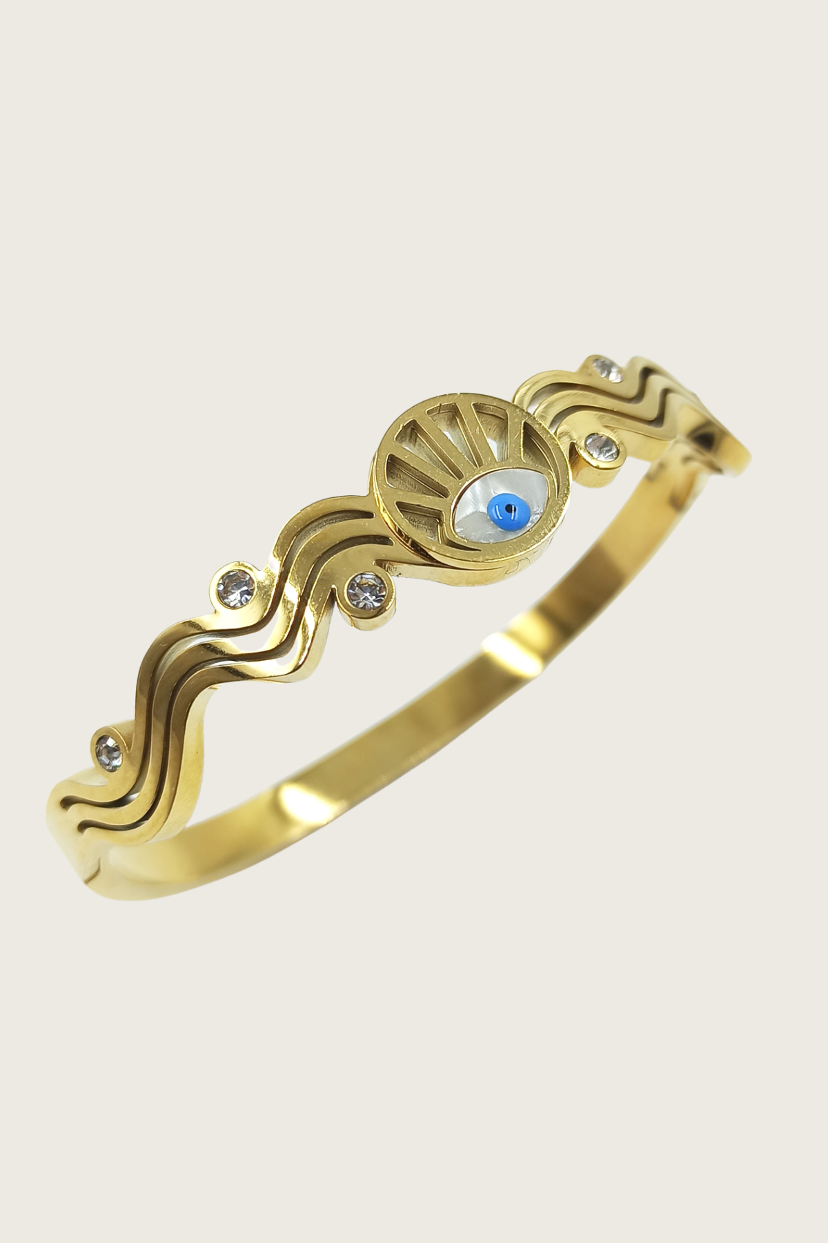 Altın Kaplama Göz Kirpik Detaylı Kelepçe Çelik Bilezik