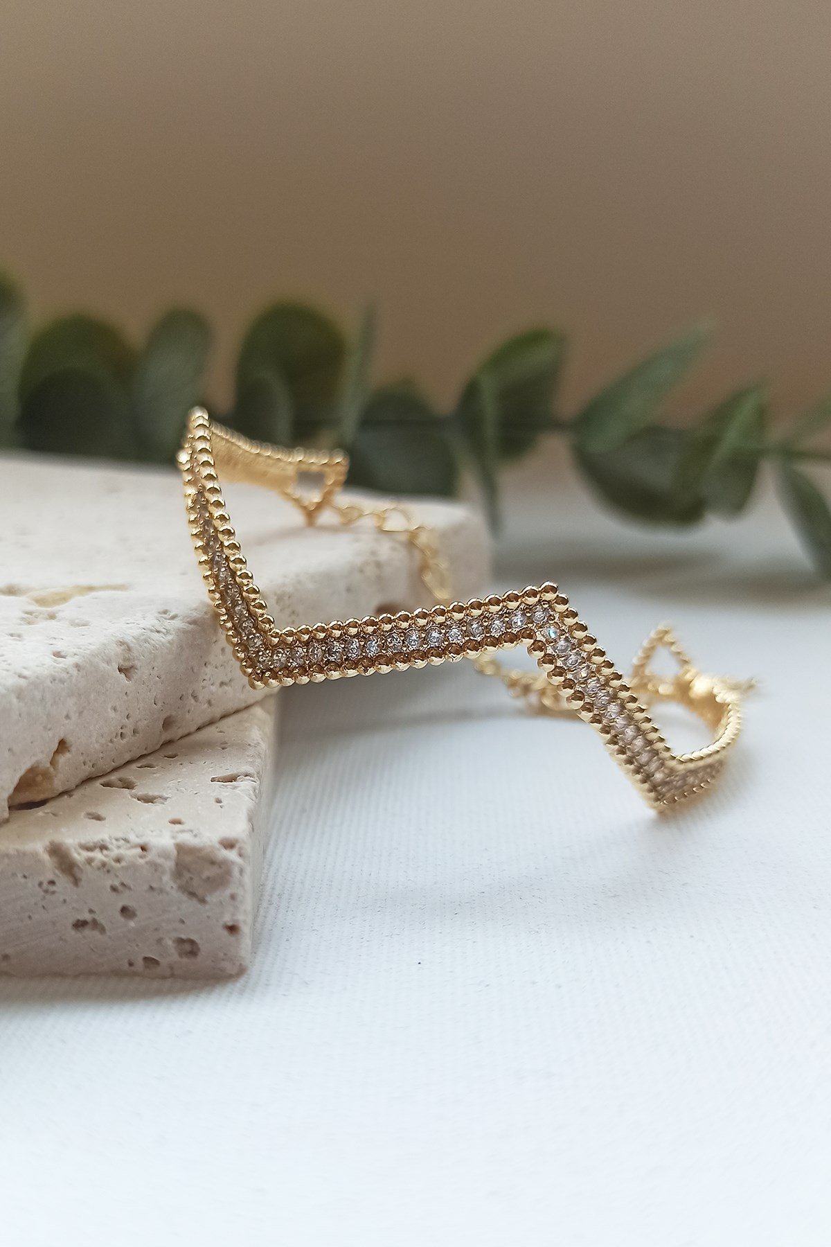 Altın Kaplama Gümüş Zirkon Taşlı Zigzag Ayarlanabilir Bilezik