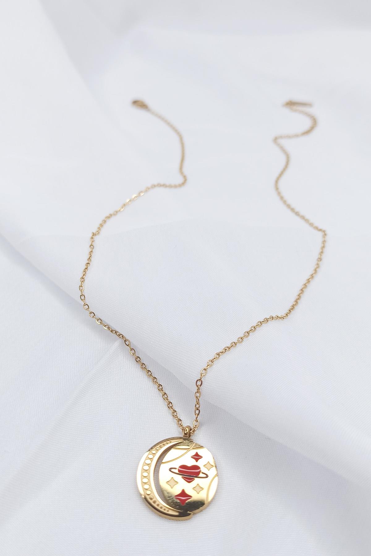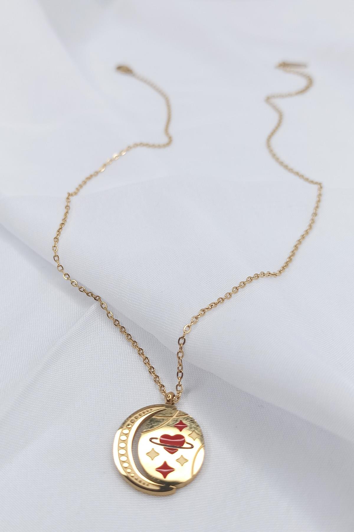 Altın Kaplama Plaka Kalpli Çelik Zincir Kolye