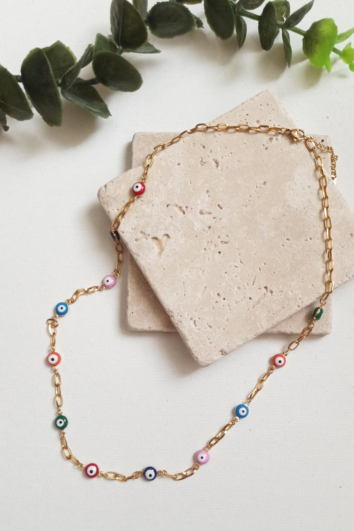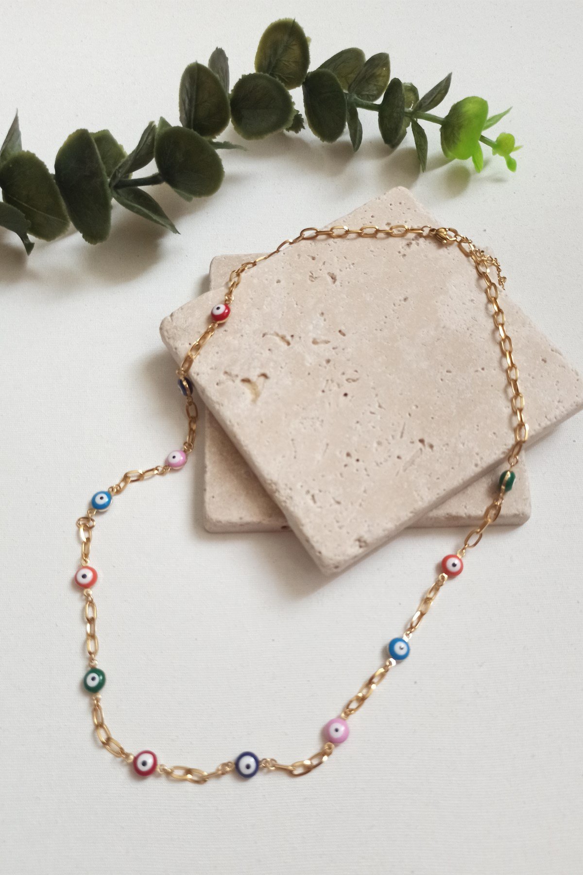 Altın Kaplama Renkli Göz Çelik Zincir Kolye