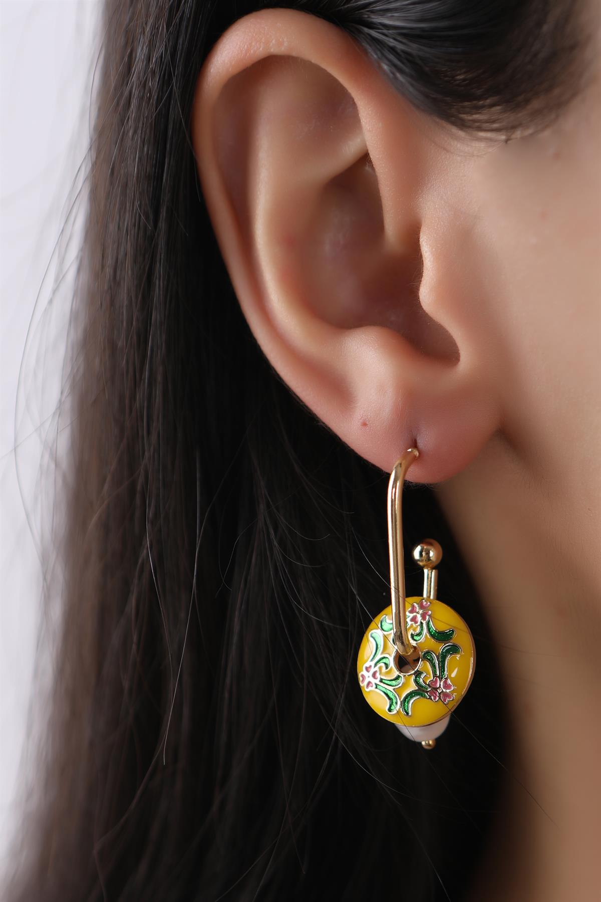 Altın Kaplama Sarı Mineli Çiçekli Tasarım Küpe Malzeme: Altin Kaplama,mineli,inci Küpeler hediye kutusu ile gönderilecektir.