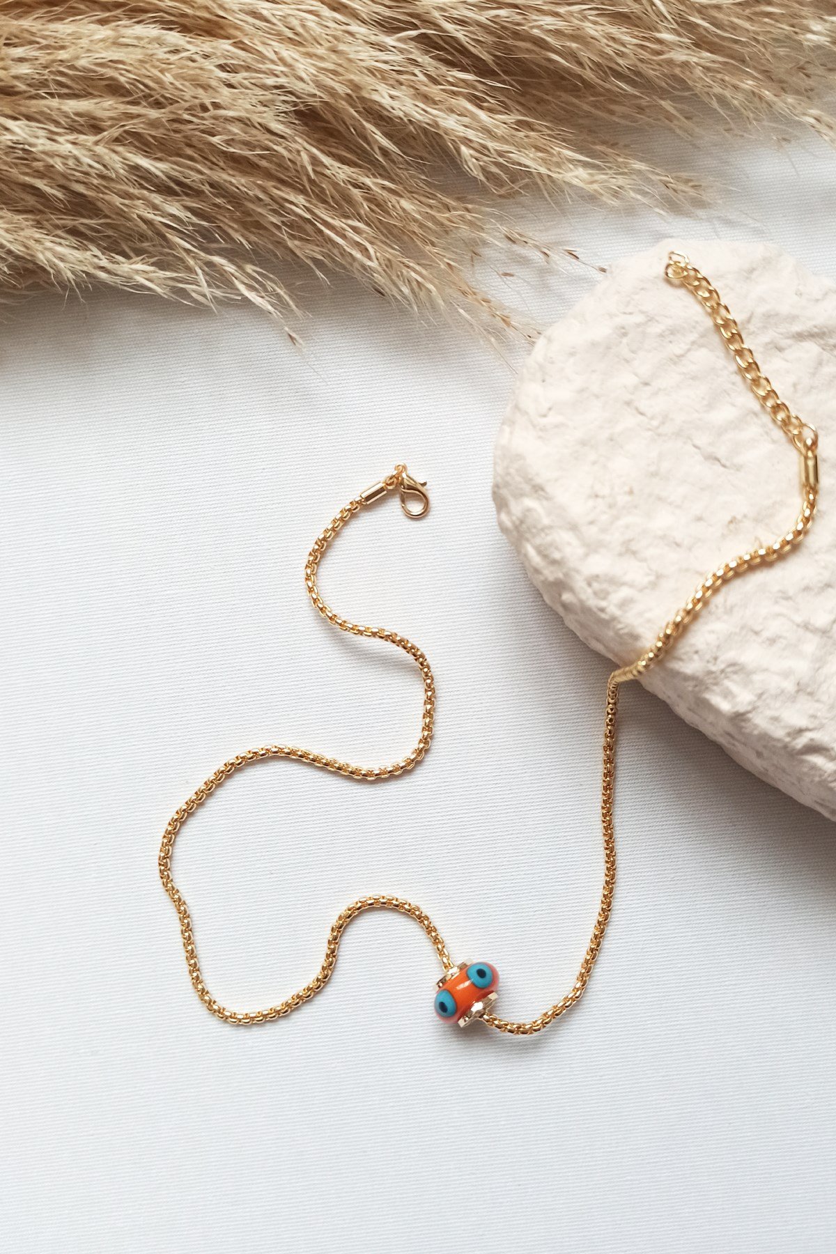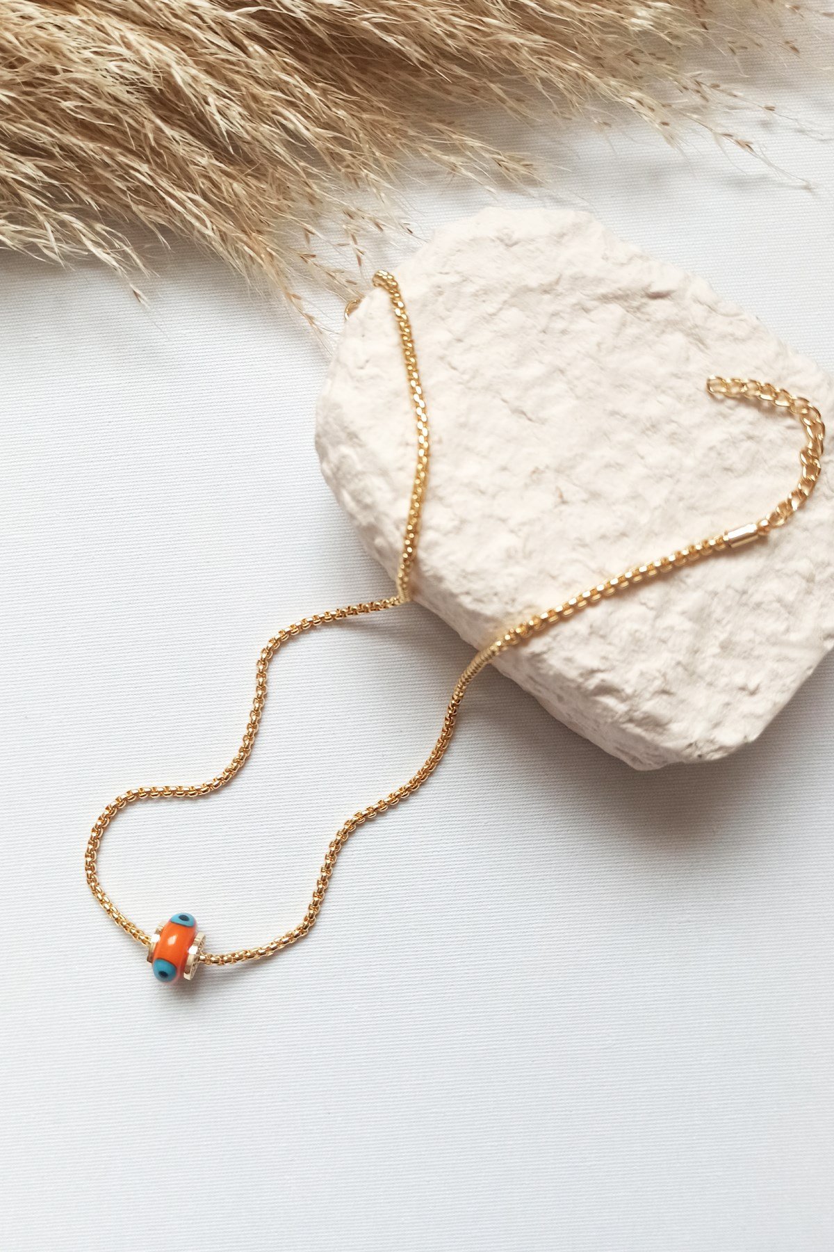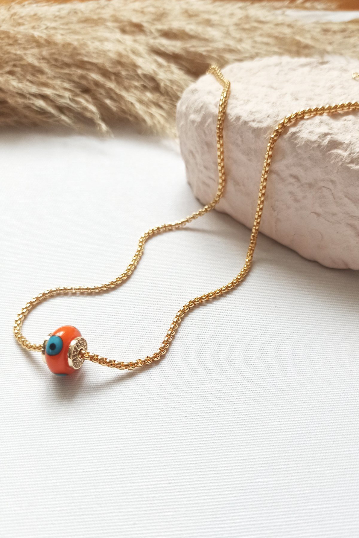 Altın Kaplama Turuncu Cam Boncuk Göz Kolye