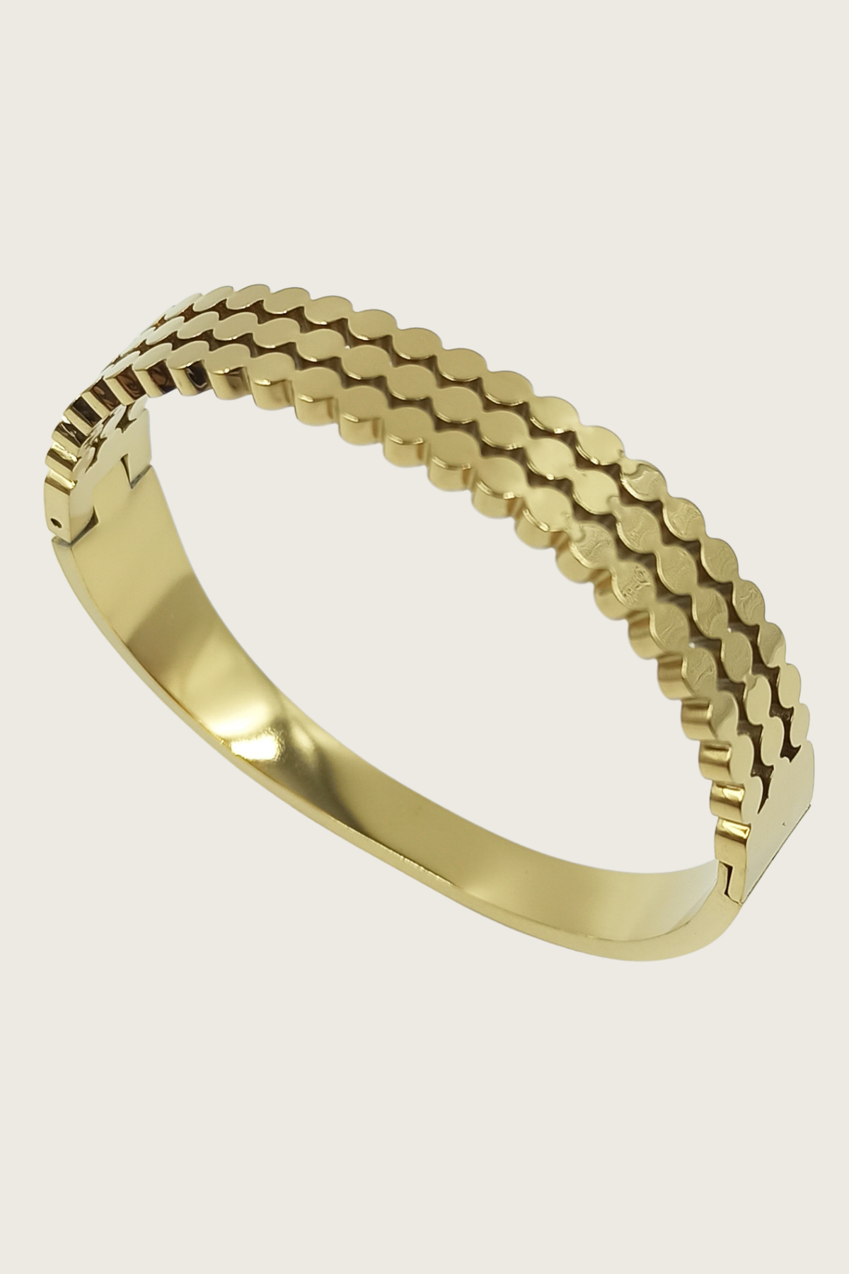 Altın Kaplama Üç Sıra Kelepçe Çelik Bilezik