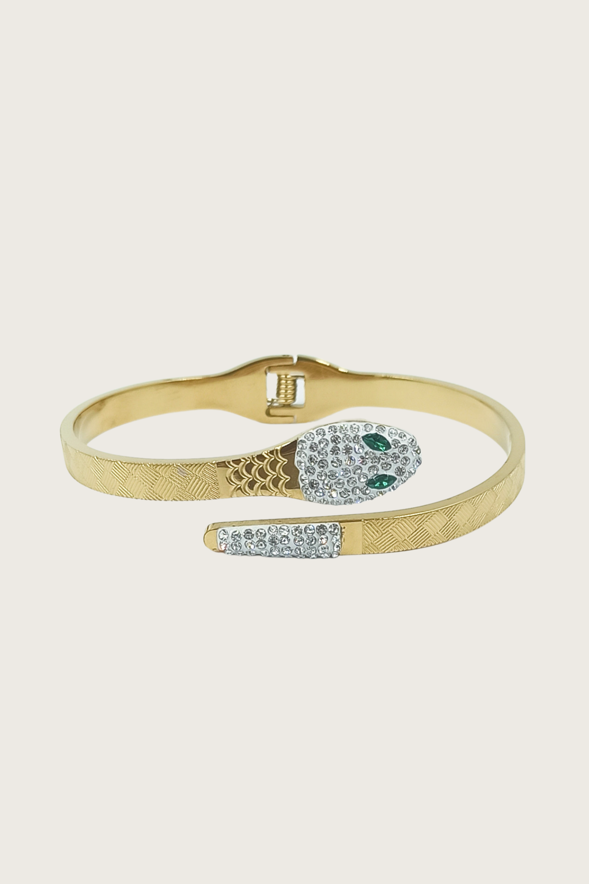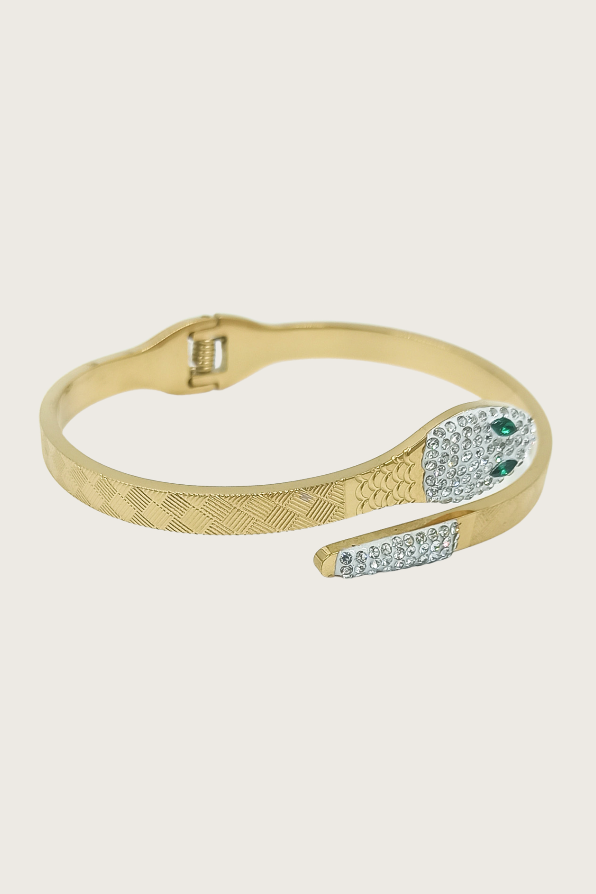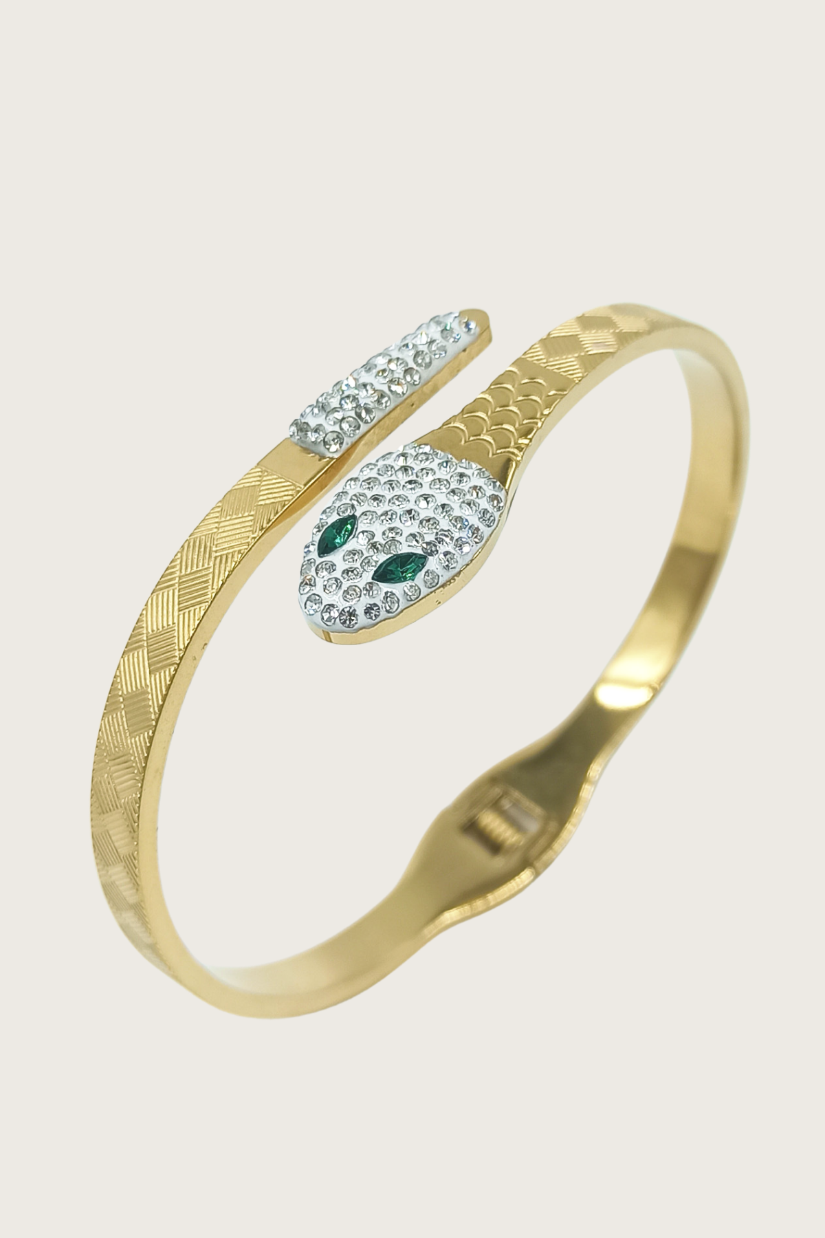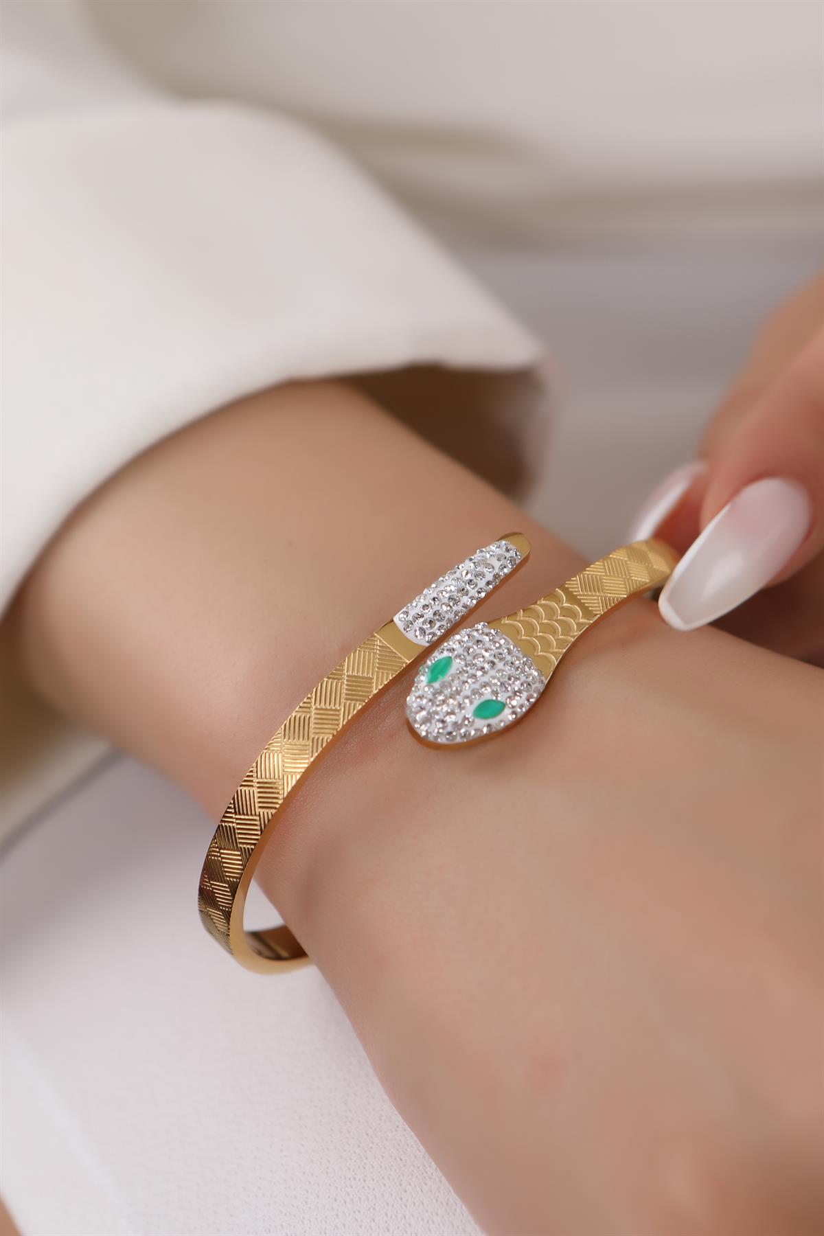 Altın Kaplama Yeşil Gözlü Kelepçe Bilezik