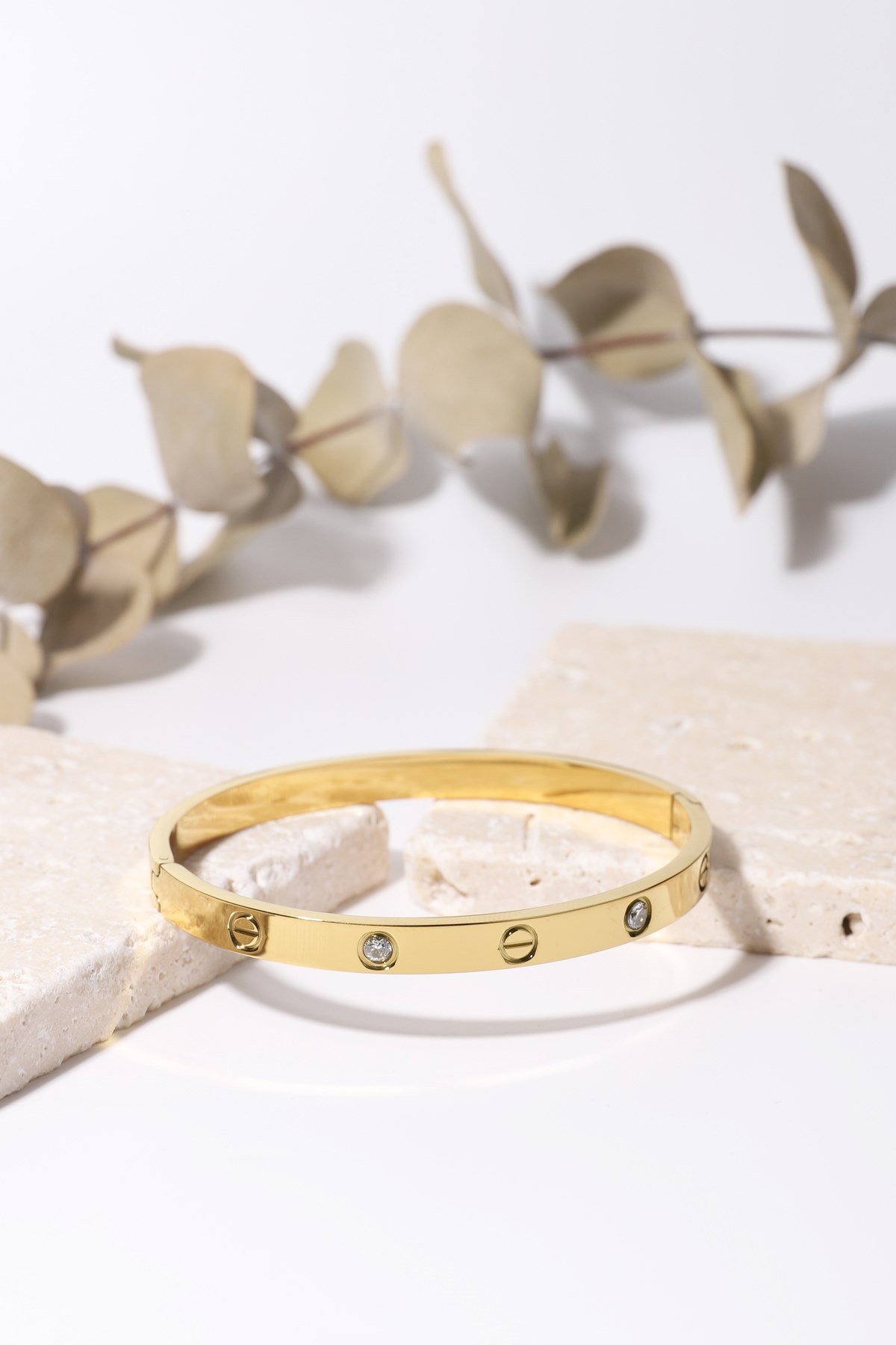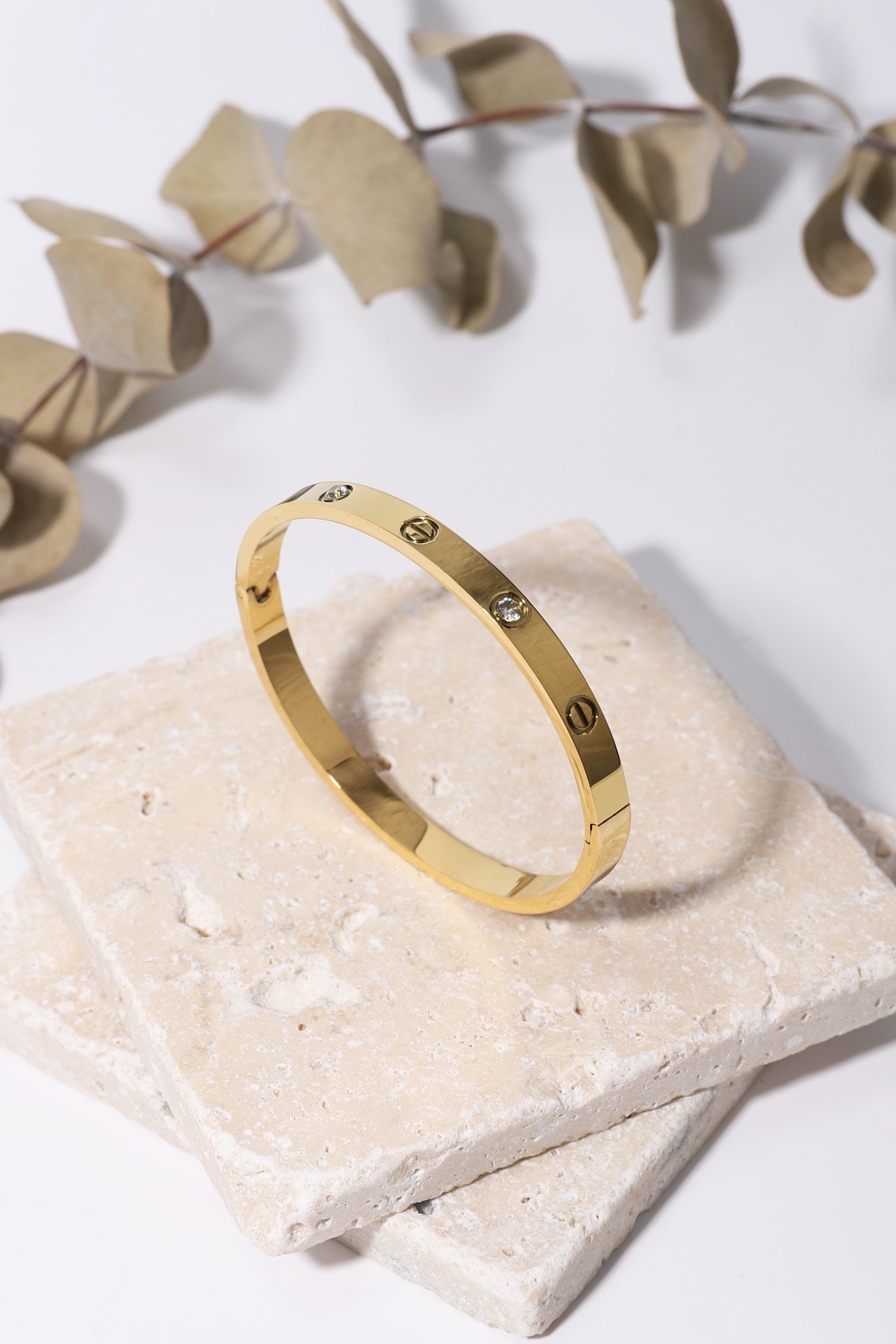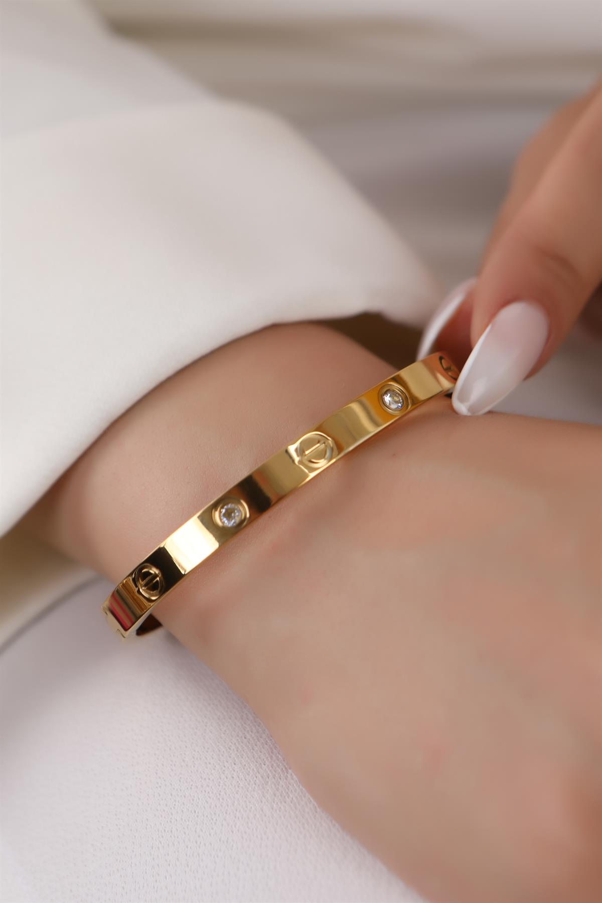 Altın Kaplama Zirkon Taşlı C. Model Kelepçe Bileklik