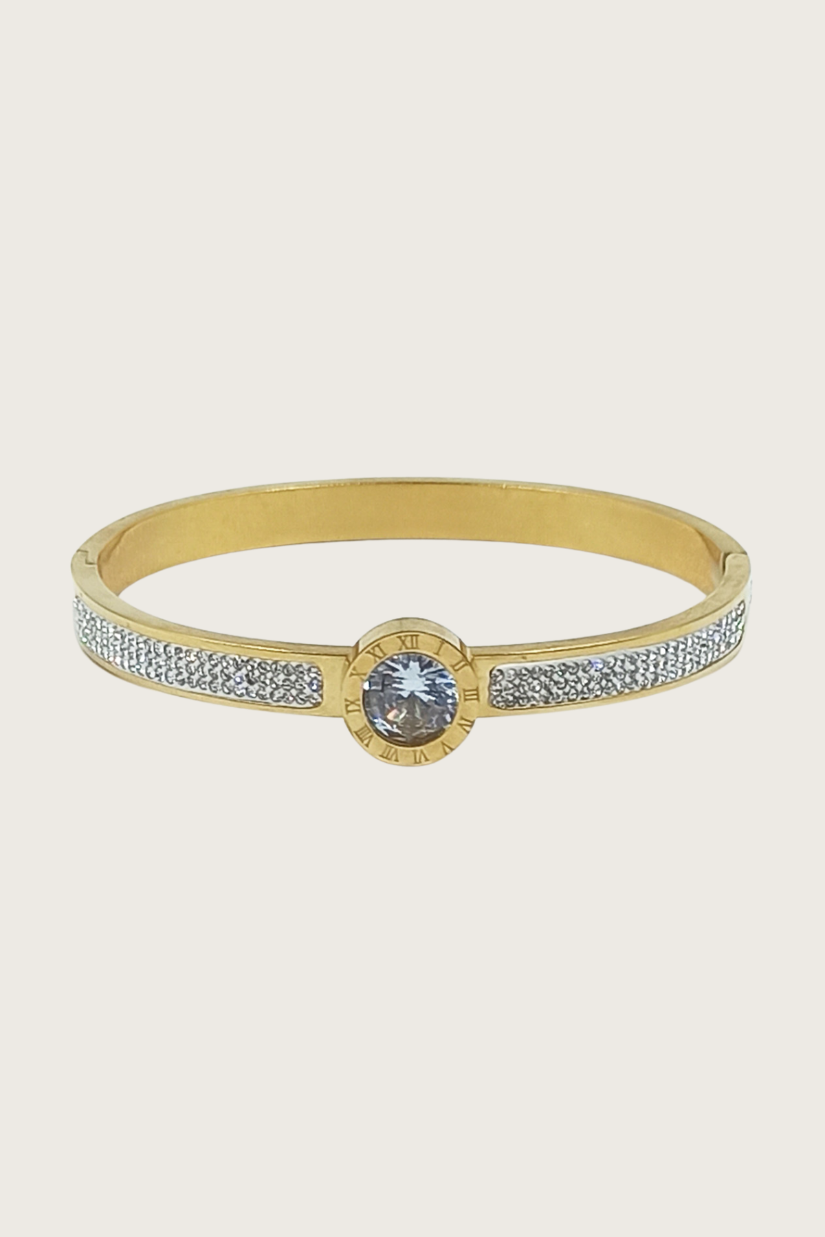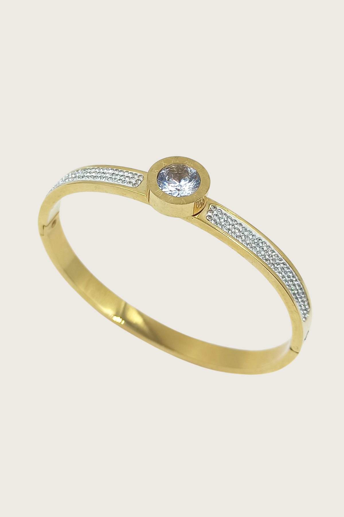 Altın Kaplama Zirkon Taşlı Çelik Kelepçe Bilezik