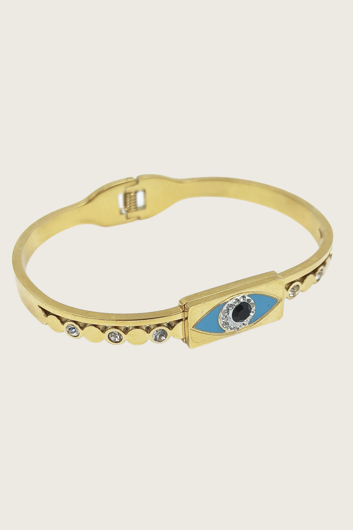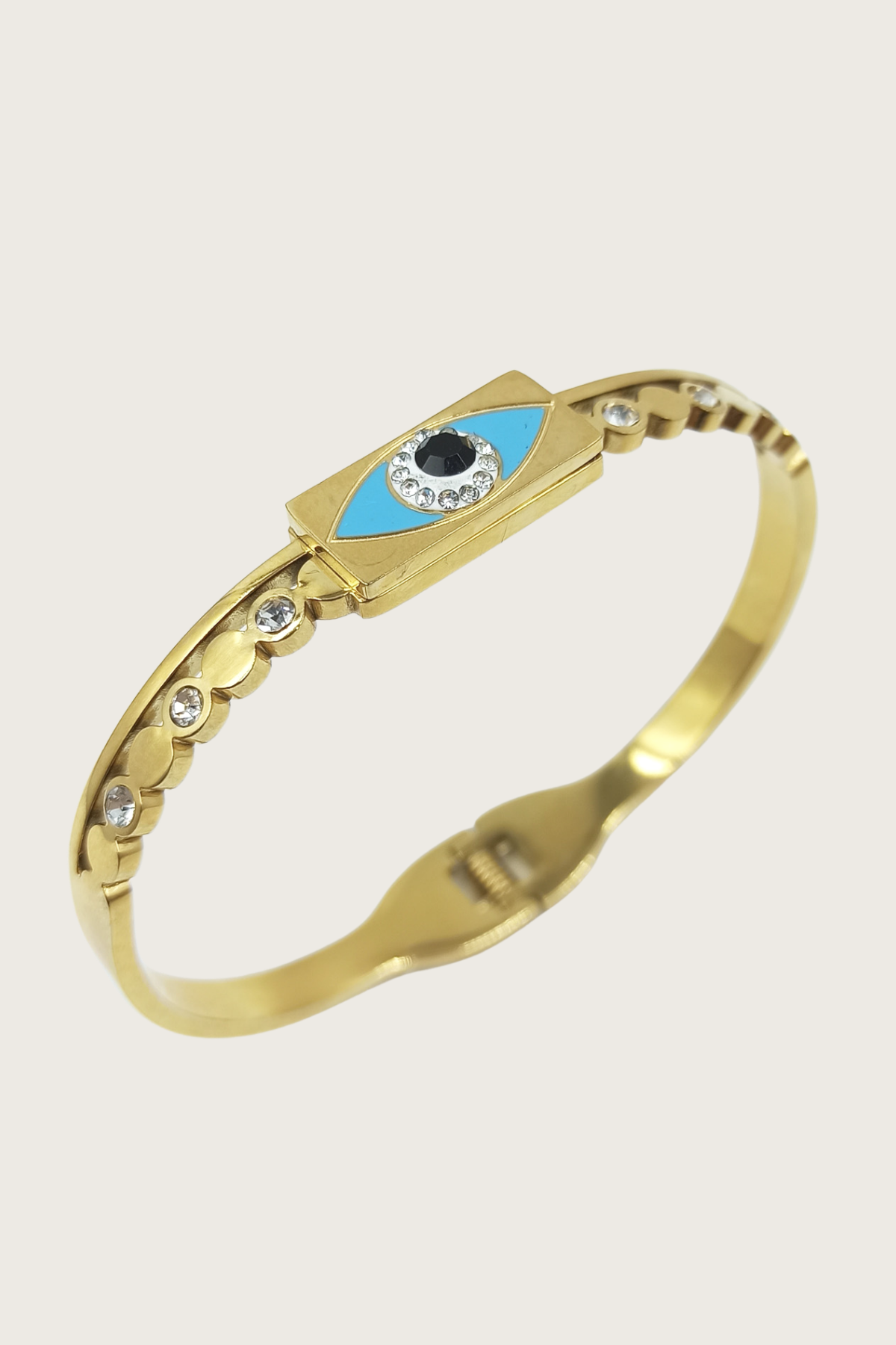 Altın Kaplama Zirkon Taşlı Göz Detaylı Kelepçe Çelik Bilezik