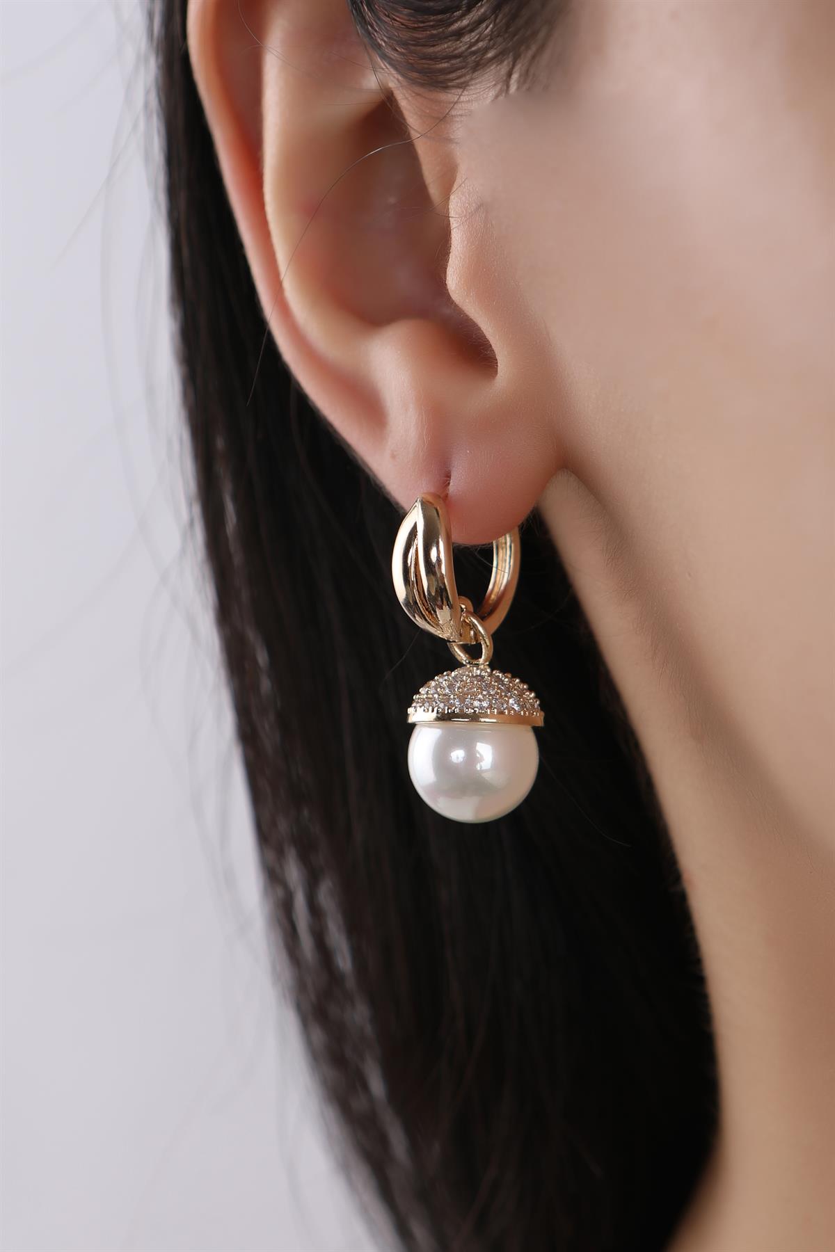 Altın Kaplama Zirkon Taşlı İnci Sallantılı Küpe Malzeme: Altin Kaplama, Zirkon Taşlı Küpeler hediye kutusu ile gönderilecektir.