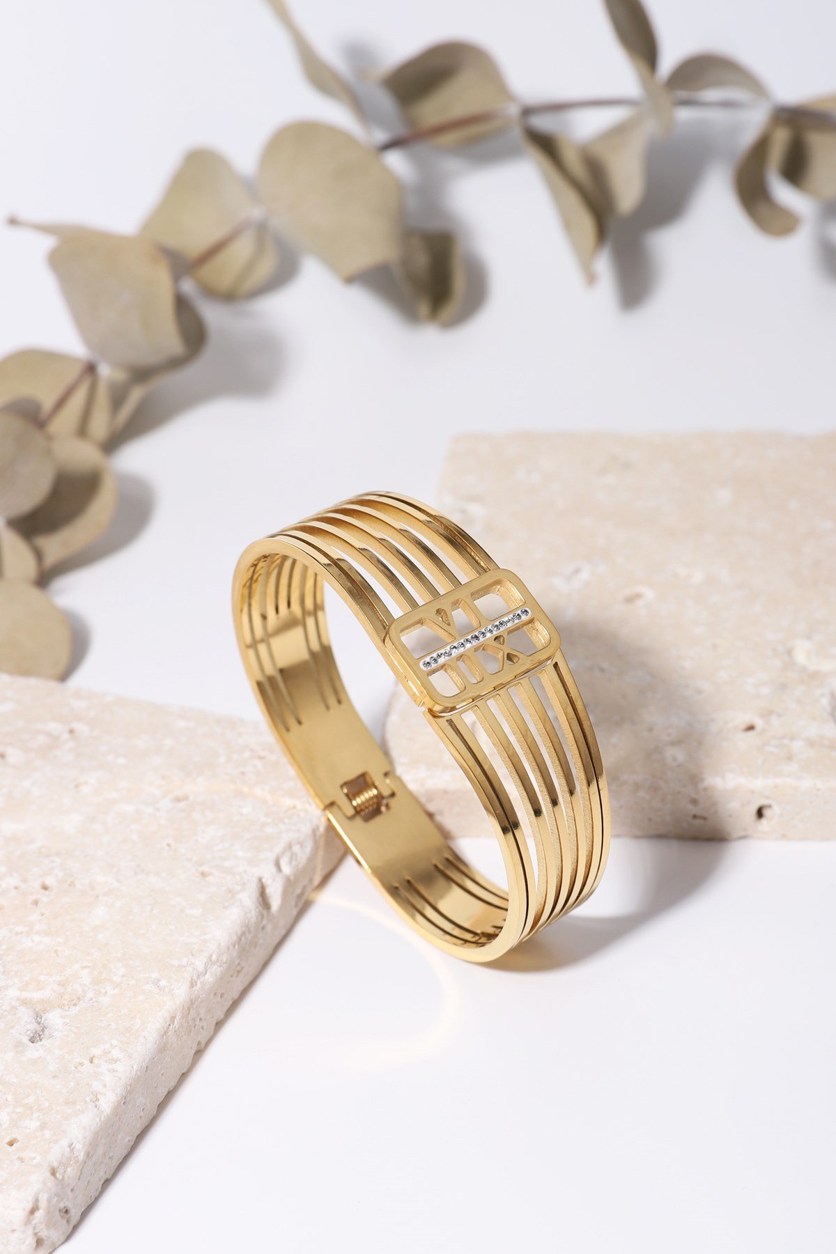 Altın Kaplama Zirkon Taşlı Kalın Kelepçe Bileklik